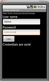 Now that we are off the starting trouble in Android development, let’s develop a simple login page. We will create username/password fields with a login button. If the username is “Admin” and password is “Admin123” we will display a valid message, else we will display an error message.
